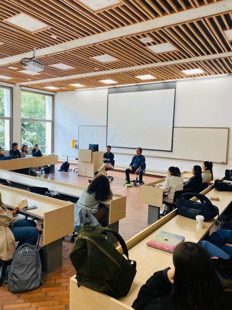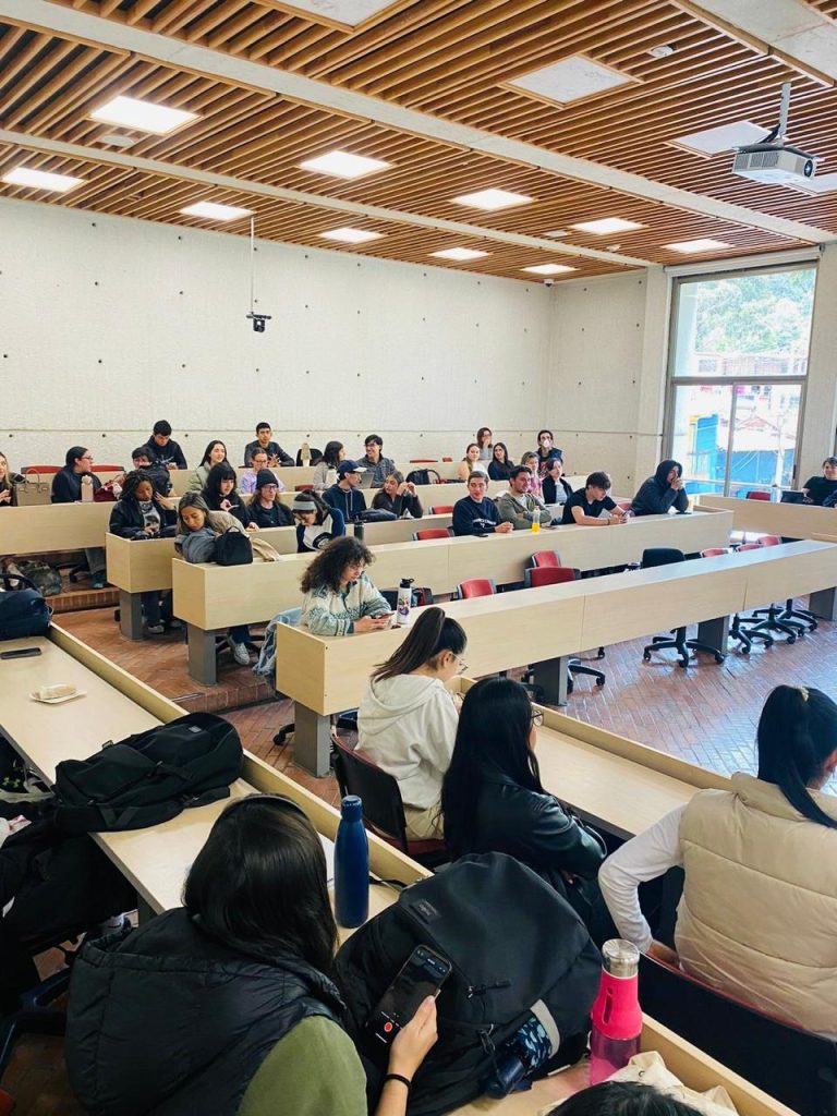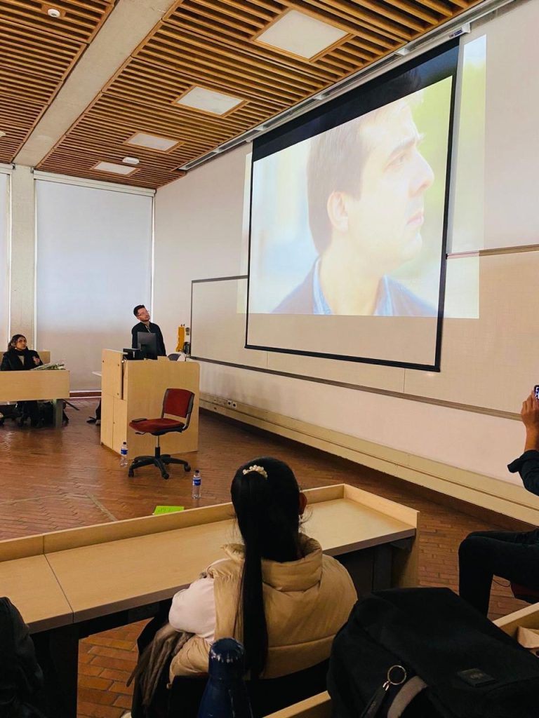 El pasado viernes, 5 de septiembre, se llevó a cabo una enriquecedora charla con el destacado humorista y autor portugués Nuno Costa Santos en el aula C-108, de 12:30 p.m. a 2:00 p.m. El evento, enmarcado en la clase de Portugués 5 y moderado por Nicolás Barbosa, ofreció a los asistentes una inmersión única en la obra y el característico humor del escritor. La sesión, realizada íntegramente en portugués, permitió a estudiantes y entusiastas del idioma disfrutar de una experiencia cultural auténtica, marcada por el carisma de Costa Santos y las dinámicas reflexiones compartidas durante la jornada.